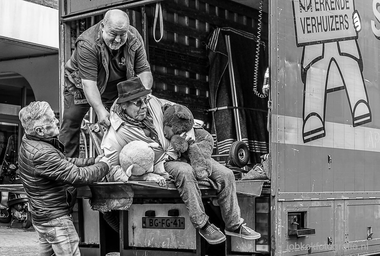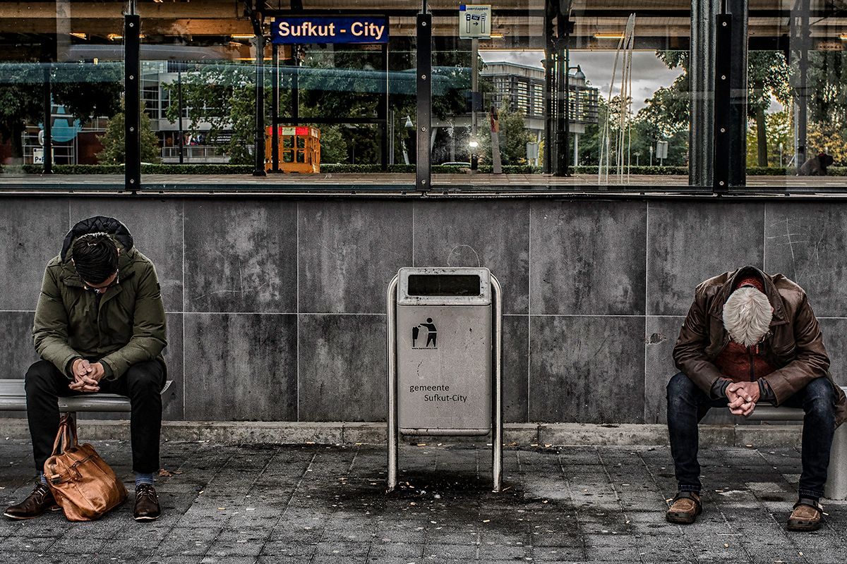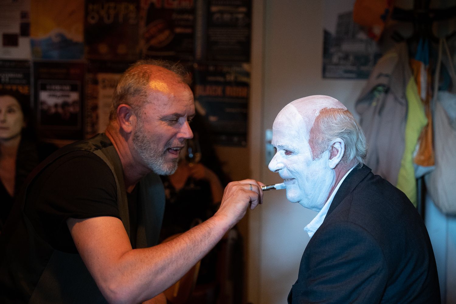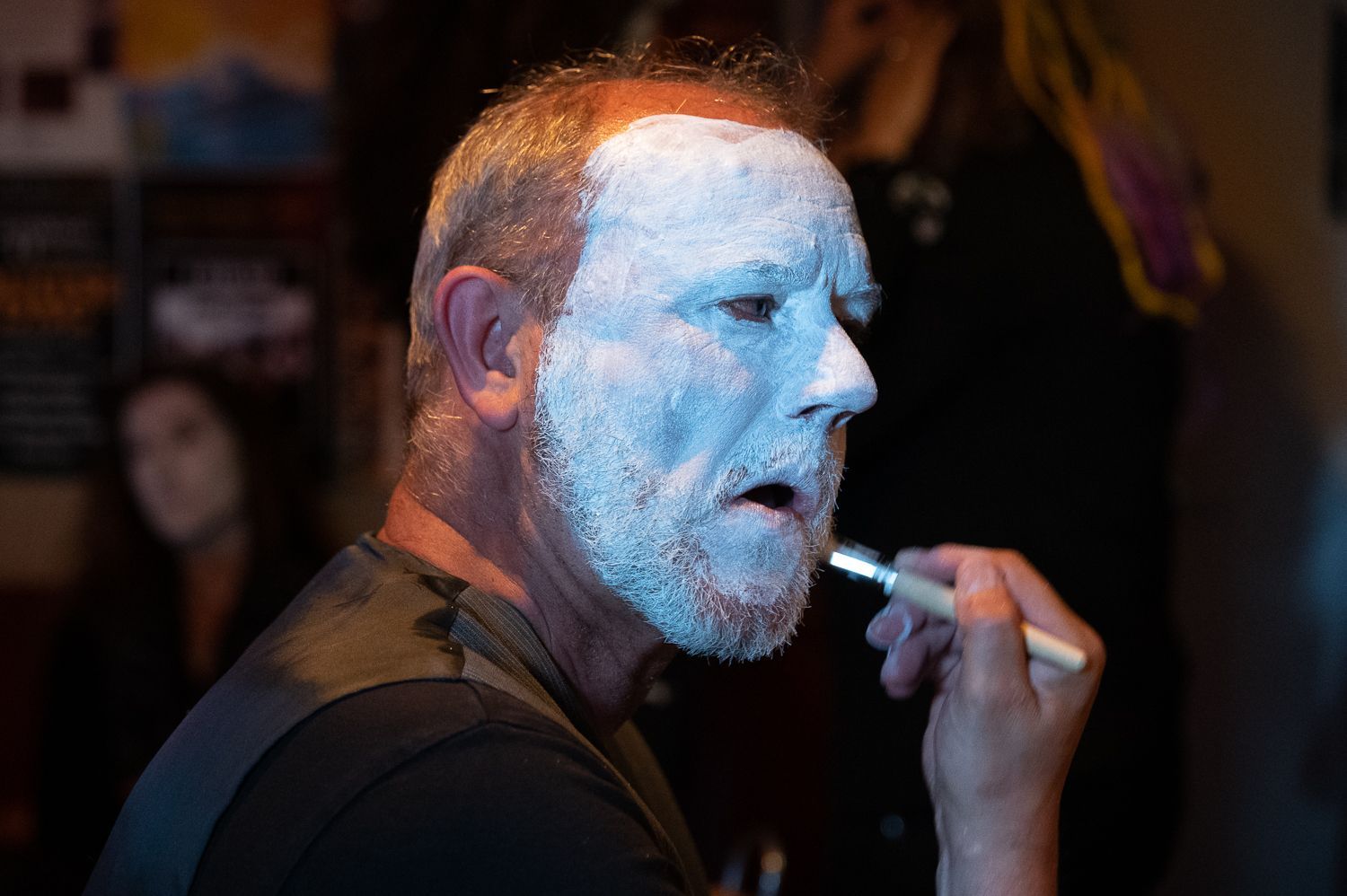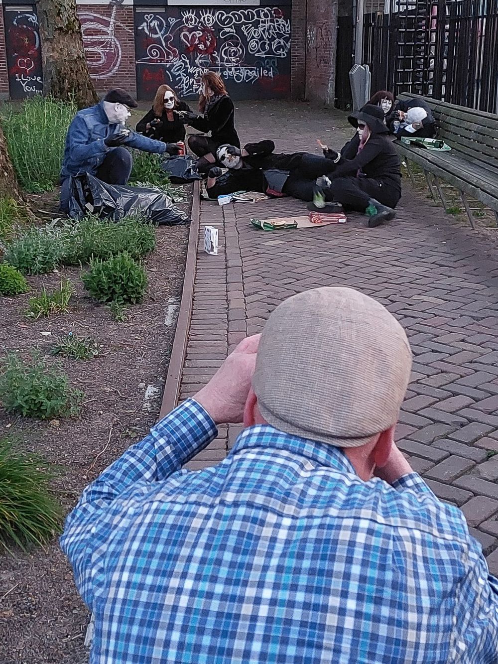 Tijdens de dag doen ze zich voor als upper-class, zogenaamd geslaagd voor de buitenwereld. Niemand ziet dat de slager de biefstuk in een enveloppe onder de voordeur naar binnen schuift, daar waar de auto op stoep staat te glimmen. Maar 's nachts moeten ze op zoek naar voedsel, als wilde beesten. Hun witte gelaat moet voorkomen dat ze elkaar in 't donker kwijtraken. Met knorrende magen legen ze de afvalzakken.